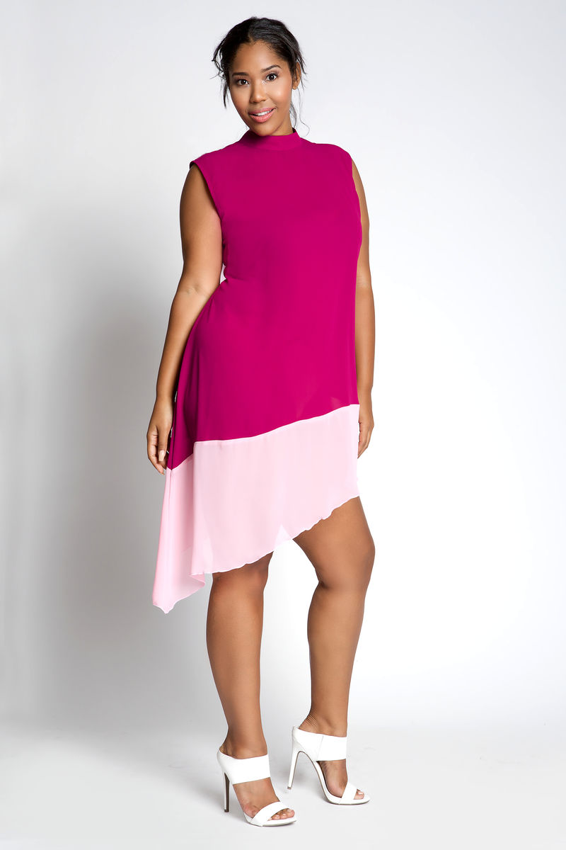 Color block tier dress by YK. Crafted in silk and chiffon. Featuring a color block panel detail with a high collar. Zipper closer to the back.